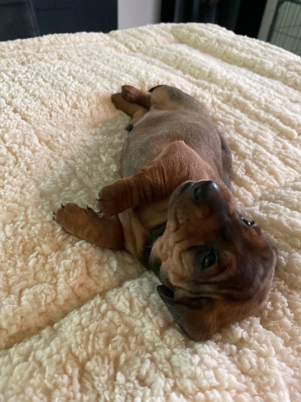 Teckel standard noir et feu Poid de naissance 240g 480g a 1 semaine vermifugee 1490g a 4 semaines